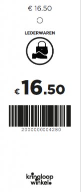 Prijskaartje lederwaren € 16.50 (oranje)