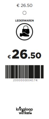 Prijskaartje lederwaren € 26.50 (oranje)