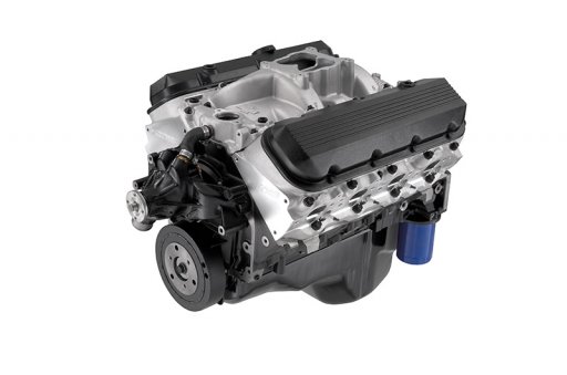 The crate engine package includes a water pump, balancer, aluminum intake manifold and a 14-inch flexplate. Your Chevrolet Performance dealer can hook you up with the carburetor, starter, ignition system and other accessories required to get this big-power Big-Block up and running.