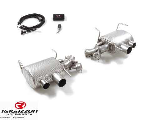Deze Ragazzon RVS achterdempers zijn ontworpen voor de Ferrari 812 Superfast Coupè 6.5 V12 (588kW) 2017+ zijn uitgerust met vacuümgestuurde kleppen die standaard worden aangestuurd door de originele ECU. Artikelcode: 50.1074.40. De optionele bedieningskit laat toe om de kleppen handmatig open te zetten via afstandsbediening, maar is niet nodig voor het gebruik van de uitlaat.