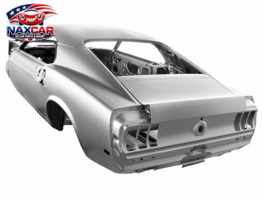 Deze 1969 Ford Mustang Fastback Replacement Body wordt niet geleverd met zij-panelen of een motorkap.