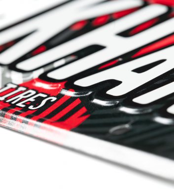 Met de alombekende HOONIGAN tekst: "Kill All Tires"